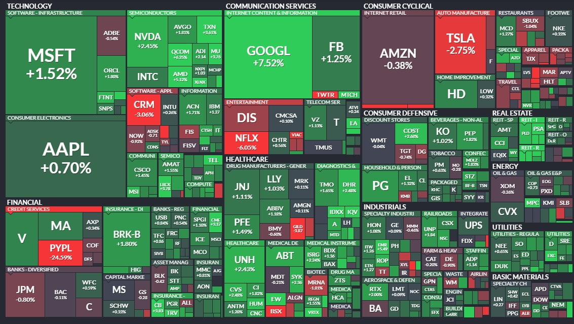 ⚫️Три основных индекса Уолл-стрит завершили торги в среду ростом четвертый раз кряду благодаря хорошим результатам владельца Google Alphabet и производителя микрочипов Advanced Micro Devices.
