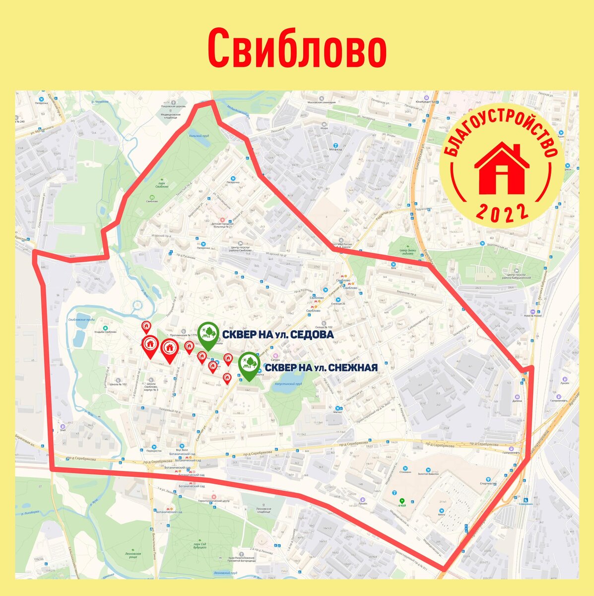 Друзья, жители района #Свиблово, делимся с вами инфографикой по благоустройству дворовых территорий жилых домов в 2022 году. Среди адресов - два адреса из ваших наказов: ✅ Седова 15 к.1 ✅ Седова 17 к.1 Помимо будут благоустроены: ✅ Лазоревый проезд, д.22 ✅ Ул. Снежная, д.11 ✅ Ул. Седова, д.3 ✅ Ул. Седова, д.5 корп.2 ✅ Ул. Седова, д.7 корп.1 ✅ Ул. Седова, д.9 корп.1 ❗️ Также в этом году будут благоустроены два знаковых для района объекта - скверы на улицах Снежная и Седова. Последний образует единую прогулочную зону с «Парком Яуза». Кроме того, продолжаем следить за ходом работ по строительству поликлиники на Уржумской 4/1 и вот актуальная информация и свежие фото 👇 Завершается установка оконных блоков. Уже начато устройство вентилируемого фасада. Постепенно поликлиника приобретает черты современного объекта здравоохранения. Напоминаем, что она будет отвечать требованиям «Московского стандарта+».