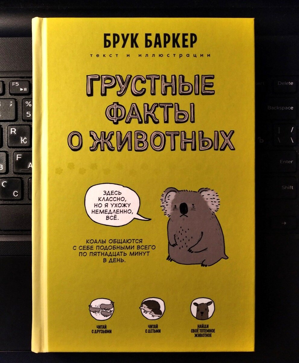 #книжныйгэндальф #гиперион В детстве мне попала в руки четырехтомная «Жизнь животных» замечательного писателя-популяризатора биологии Игоря Акимушкина. Книжный мальчик, я в ту пору глотал любые книги без разбора — примерно так же, как сейчас беру их с полок «Гипериона», и факты из мира животных интересовали меня ничуть не меньше, чем занимательная психология или история танка БТ-5. Тогда-то я и понял, что жизнь животных сильно отличается от тех сказочных представлений о ней, которые формируются у большинства из нас годам к пяти-шести. А у многих такими и остаются до конца жизни. Сегодня у меня появился прекрасный аргумент в пользу этого давнего открытия — книга американки Брук Баркер «Грустные факты о животных». Знакомясь с этими фактами, я то и дело фыркал от смеха, не в силах сдержаться. И не потому, что я такой бессердечный (как, например, медуза) тип. Просто читать эту книгу и не смеяться невозможно! Грустными факты явно названы в основном ради красного словца: кому же не захочется