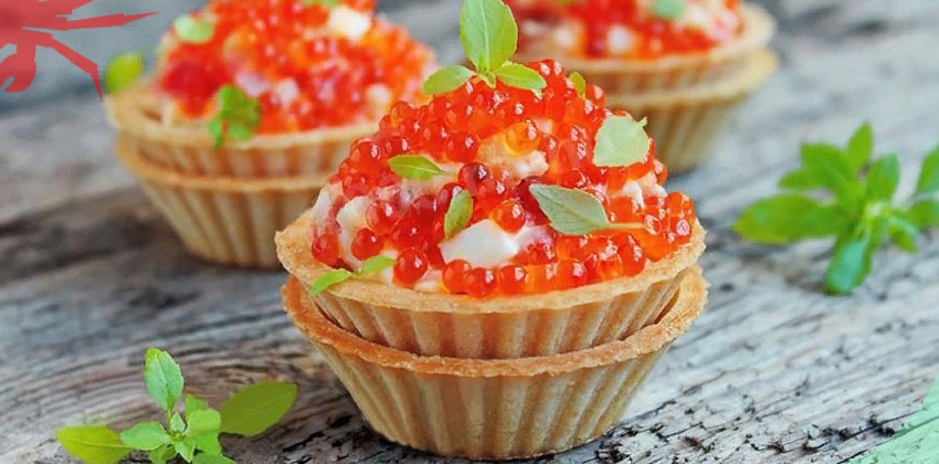 Рецепт: Салат царский с красной икрой в тарталетках