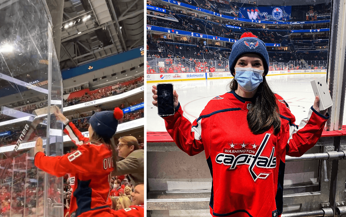 Болельщица «Вашингтон Кэпиталз» разбила айфон, помогая игроку достать застрявшую клюшку. Клуб подарил ей новый телефон