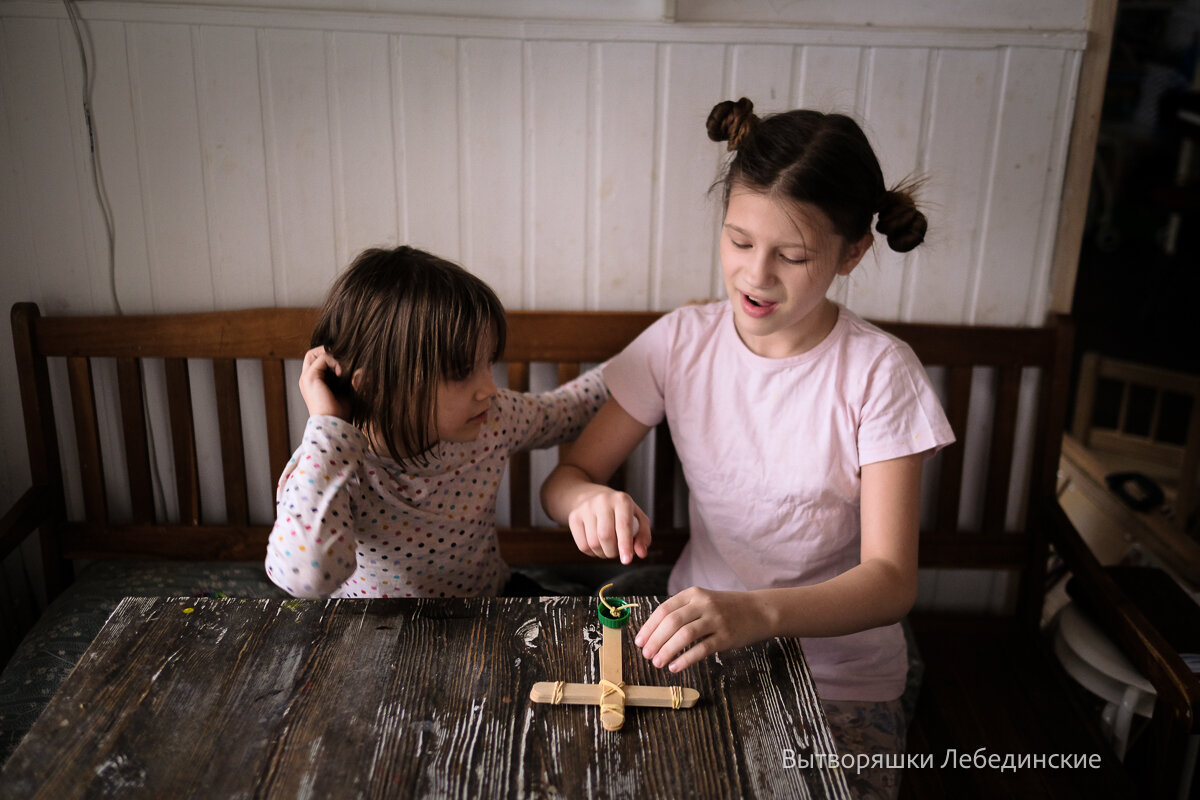 Смастерили простую увлекательную игру из деревянных палочек и резинок. Дети играют четвертый день