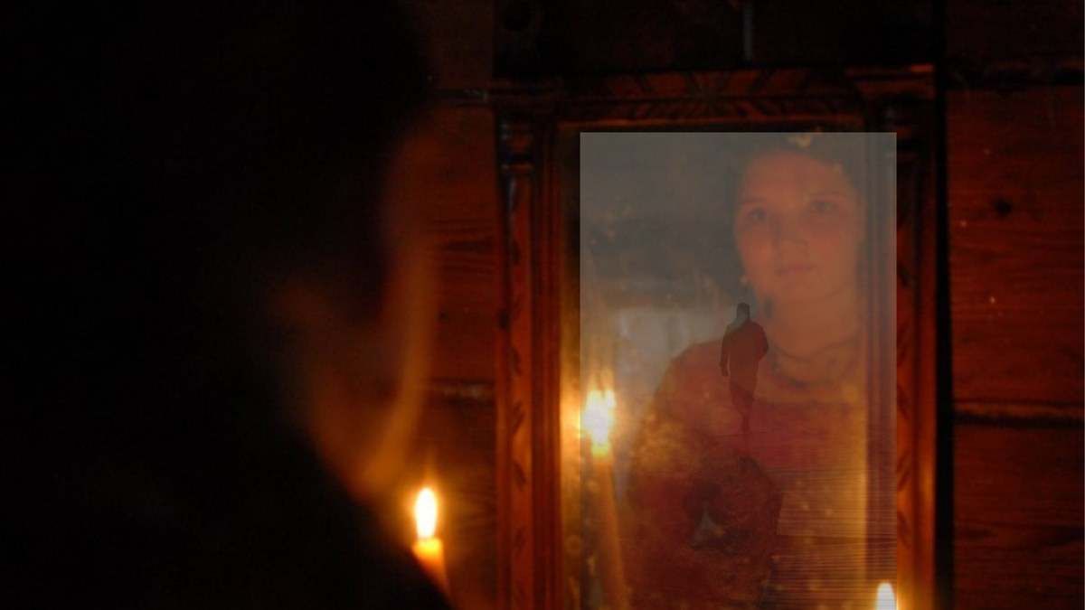 А за год до этого выдали меня. Мы с подружками гадали на Святки, кто будет моим мужем. Поставили зеркала, зажгли свечи. В полночь в зеркале появилась длинная дорожка, а по ней быстро идёт незнакомый взрослый мужик и несёт на плече лопату.