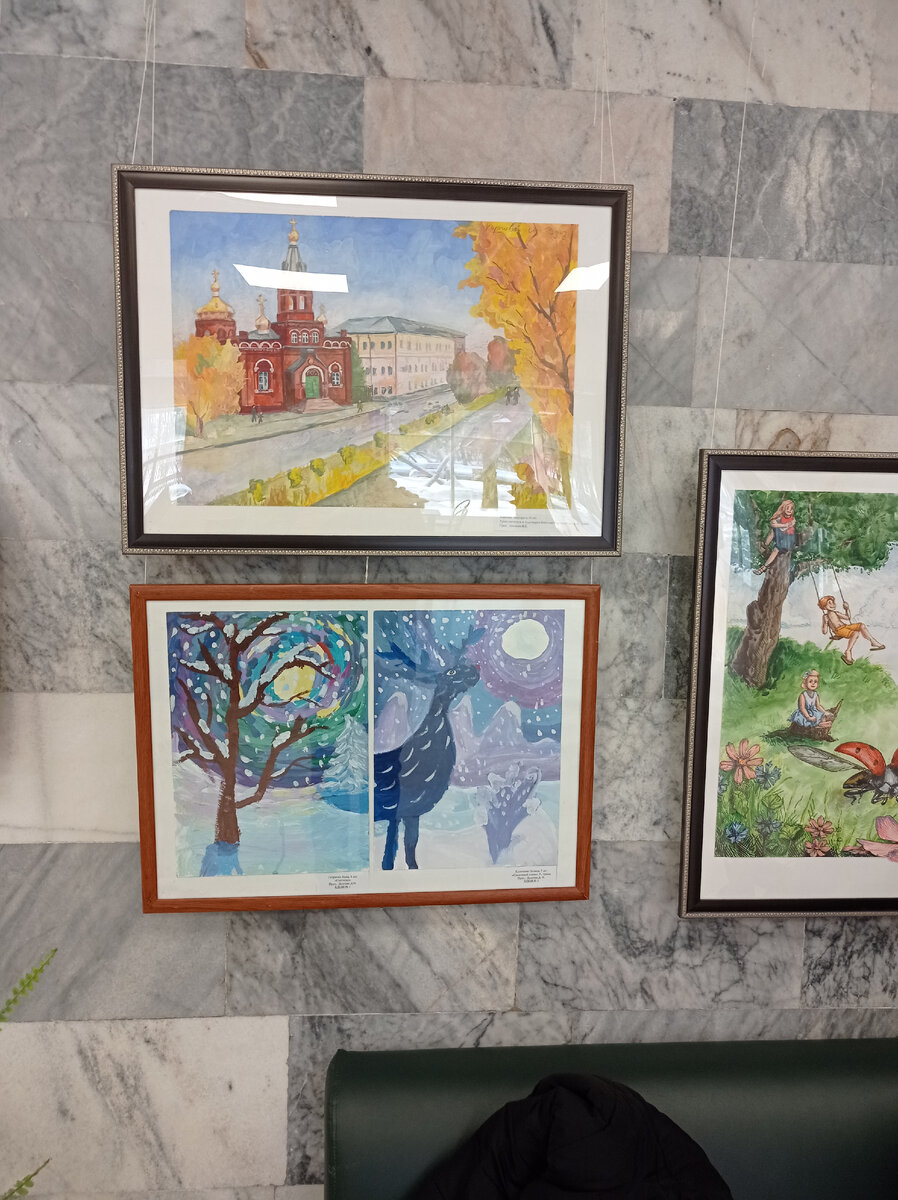 Вакцинация дело сугубо добровольное! Я не раздумывал ни секунды: необходимо! Тем более, моя концертная деятельность и работа с людьми непосредственно связаны с риском. Первый раз позволил запустить по орбите своего организма Спутник в июле прошлого года. Подошло время для ревакцинации, записал на госуслугах себя, супругу и родителей. Дети вакцинировались позже, им на ревакцинацию ещё рано. В назначенный день пришли в поликлинику, заполнили все документы, ожидаем своей очереди. Записал родителей первыми, специально после перерыва кабинета на санитарную обработку. До открытия кабинета оставалось 15 минут. Стал осматривать выставку картин учащихся хужодественных школ. Она выгодно отличалась от предыдущей, о которой писал в первой статье о вакцинации. Ссылка на неё в конце данной публикации. Несколько картин сегодняшней выставки на фото. Назначенный час вышел, пора запускать пациентов, но дверь в кабинет не открывают. Говорю маме, которая присела на лавочку у дверей: "Дёрни ручку, мож
