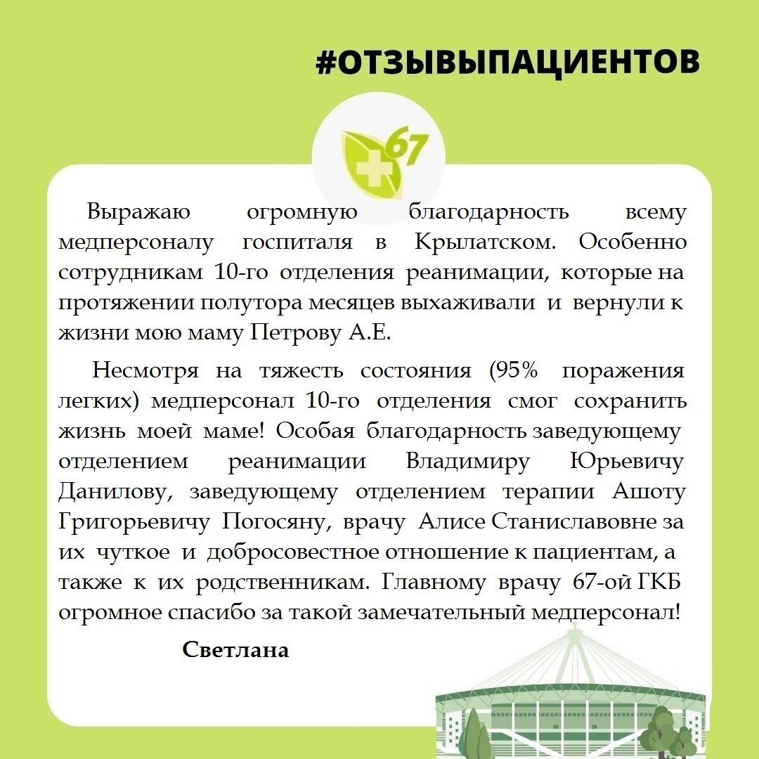 Мы продолжаем получать благодарности от пациентов отделений, оказывающих помощь пациентам с COVID-19, и их родных. Большое Вам спасибо за тёплые слова! Берегите себя - соблюдайте меры профилактики и не откладывайте прохождение вакцинации. Узнать подробности о вакцинации от COVID-19 и записаться на прививку можно на сайте MOS.ru по ссылке: https://www.mos.ru/city/projects/covid-19/privivka/ Будьте здоровы! #Москва #Крылатское #госпиталь #врачи #медсестры #больница #гкб67 #COVID #коронавирус #спасибо