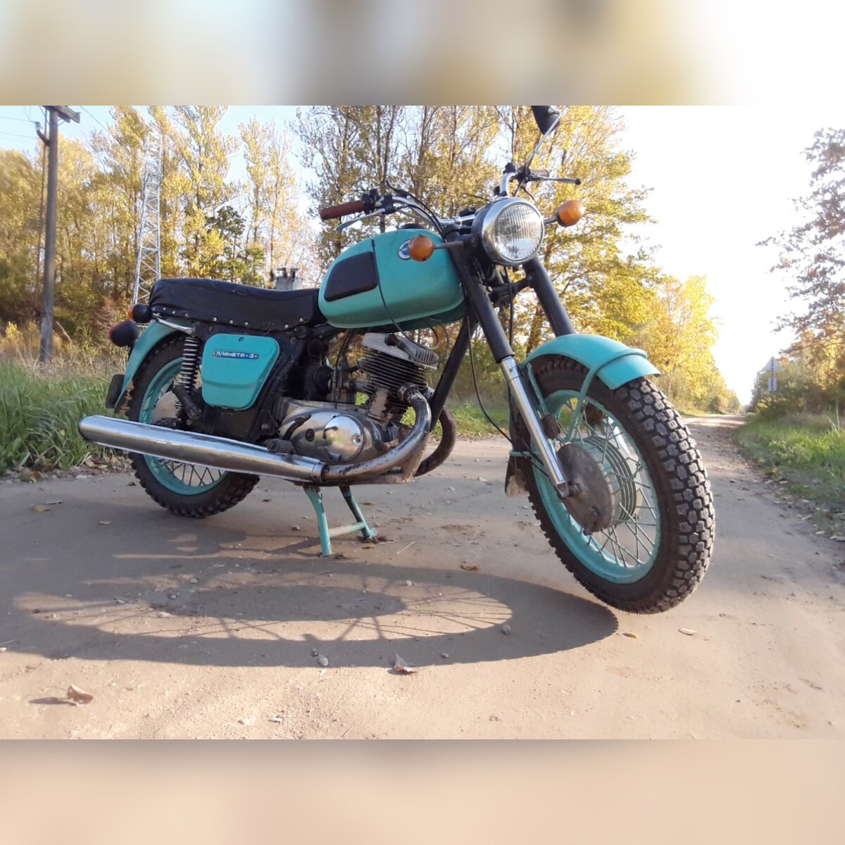 Начали мы поиски своего "первенца". Ходили по деревне спрашивали, может кто продаёт, но увы ничего не нашли. Потом начали штудировать Авито и через некоторое время нашли планету 3. Мотоцикл был в хорошем состоянии и по приемлемой цене. Взяли, погрузили в прицеп и увезли в деревню. Сначала он стоял у нас просто в мастерской, чуть позже мы с братом построили для него гараж, куда и ставим ИЖик по сей день. Зимой в тот же год после приобретения, купили к нему коляску, что бы можно было ездить с грузом и втроём с комфортом. За