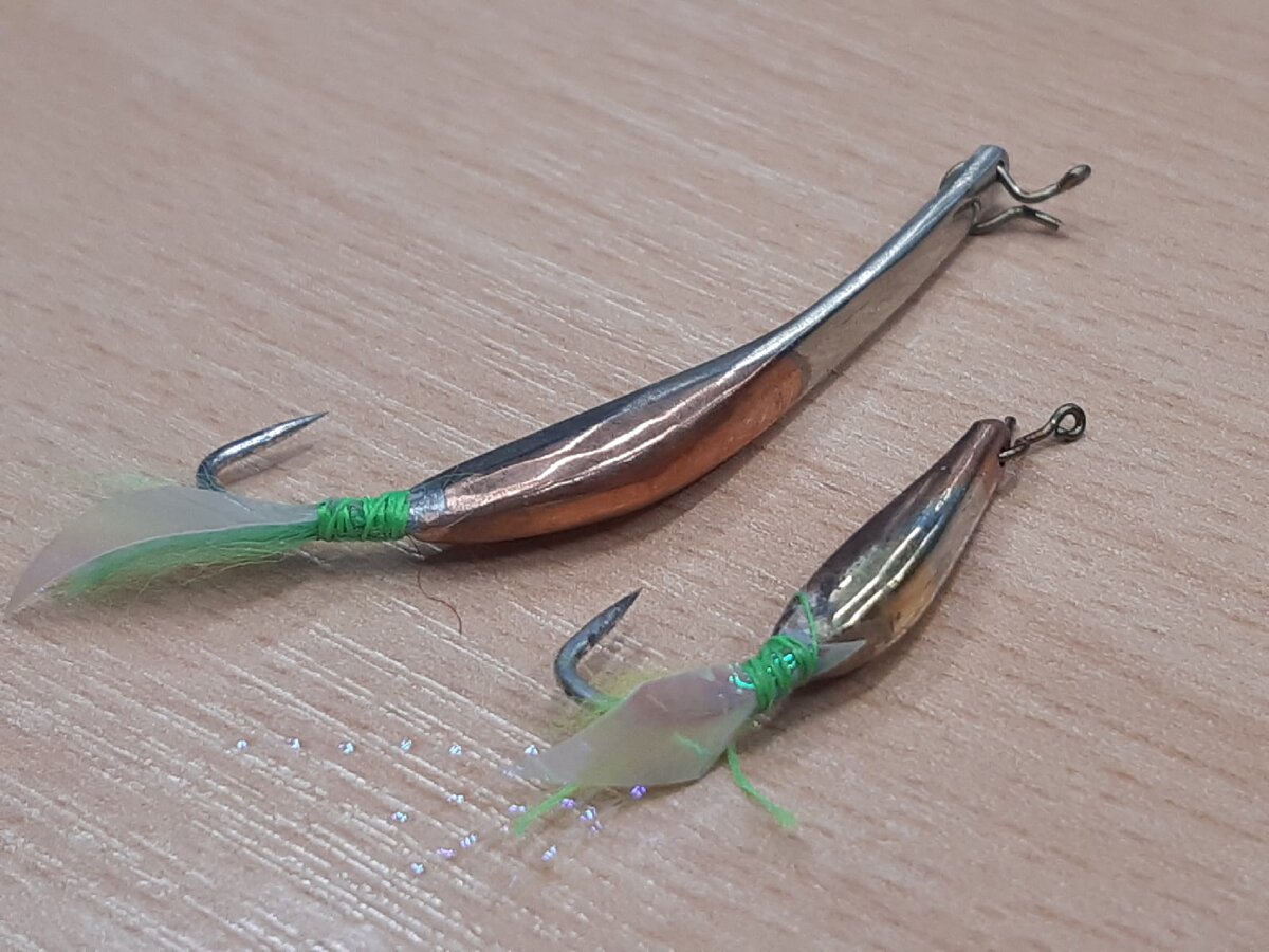 Хотел бы сегодня поговорить о ловле корюшки на так называемые махалочные блесны. Вообще большинство корюховых блесен имеют небольшой вес, и вытянутую , слегка изогнутую форму- этакие загигулины, махалочные такие же в том числе. Крючки для самодуров и гирлянд- вообще спицы загнутые без какой либо игры. Если традиционно на подобные приманки подсаживают что-то : кусочки рыбы, креветки или различных морепродуктов, то дальневосточники давно смекнули, что можно обходиться и без всего этого. Достаточно привязать что-то к блесне имитирующее наживку и ловить почти так же успешно. Путем различных экспериментов выяснилось, что неплохо работает различный люрекс, всякие , обязательно японские , нитки и кусочки рыбьей кожи, или ее заменители. Рыбья кожа- как насадка для махалочных блесен, крючков для гирлянд, прочих приманок Японцы , конечно, молодцы и выдают очень широкую линейку обработанной рыбьей кожи на любой вкус и цвет, существует даже со светонакопительным эффектом. Рыбья кожа безусловн