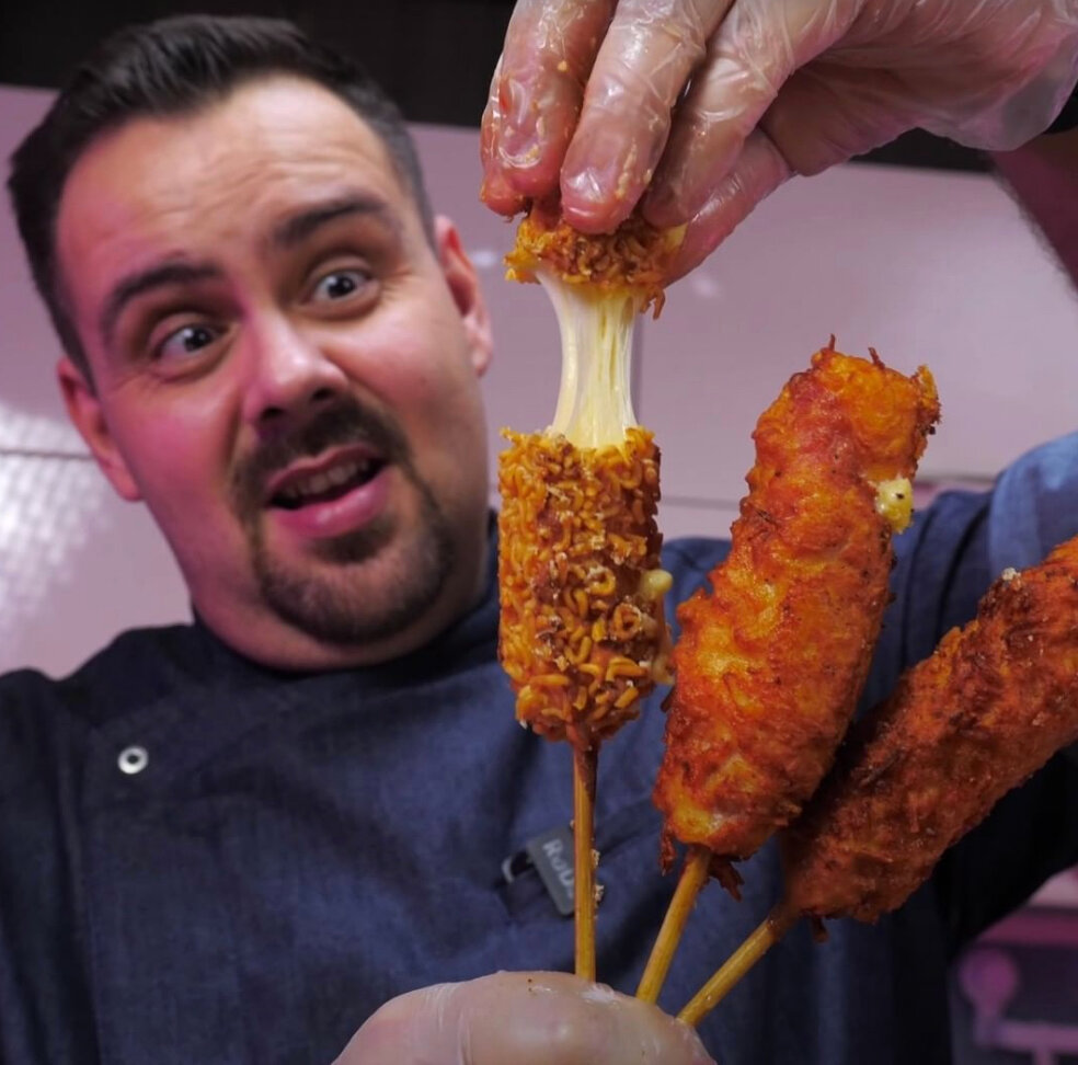 Наготовил разные корн-доги. Три разные панировки — сухари, рамен и картошка. Разные начинки. Корн-доги — это почти сосиска в тесте или хот-дог, но на палочке. Ингредиенты: -Мука пшеничная 200 гр