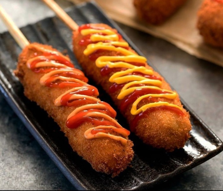 Хорошее и простое угощение для праздников и не только.😊 Ингредиенты Сосиски 10-15 шт. Кукурузная мука-40 г. Пшеничная мука-50 г. Молоко -60 мл. Яйца -2 шт. Соль,сахар,разрыхлитель по вкусу Растительное масло Деревянные шпажки Приготовление В миску разбиваем разбиваем яйца, добавляем соль, сахар, перемешиваем венчиком. Далее добавляем молоко, кукурузную и пшеничную муку с разрыхлителем. Перемешиваем должно получится тесто по консистенции кау густая сметана. Тесто не должно быть жидким, так как оно будет стекать с сосисок. Освобождаем сосиски от пленки. Обваливаем сосиски в муке. Кляр переливаем в высокий стакан для того чтобы сосиски полностью погружались. Насаживаем сосиски на шпажки и погружаем в кляр. Быстро вынимаем и погружаем в раскалённое масло жарить. Готовятся они 5 минут. Подавать на стол можно с любым соусом кому как нравится. Приятного аппетита❤