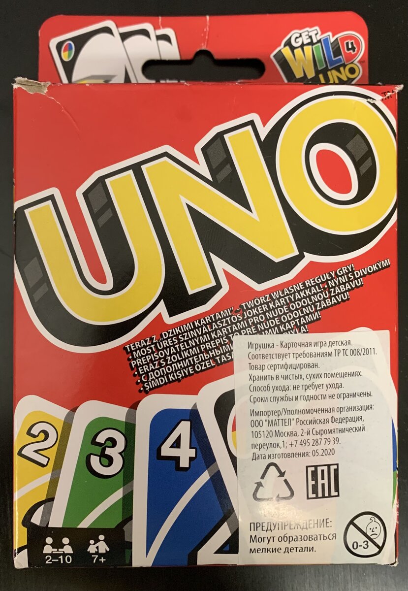 Всем привет! Хочу рассказать про интересную настольную игру. Называется она Уно. Мое знакомство с этой игрой произошло еще в далеком 2010 году, но я и не предполагала, что эта игра будет актуальна и в 2022 году. Когда нам с дочкой хочется посмеяться и поиграть, мы всегда берем Уно! Она рассчитана от 2 до 10 человек. Колода состоит из 108 карт. Есть карты цифровые, от 0 до 9, они все 4-х цветов. Есть активные карты, например: пропуск хода, закажи цвет и возьми 4 карты, возьми две карты. Еще в колоде есть 2 карты, на которые вы можете придумать свои собственные правила, например: возьми 10 карт, или загадай цвет и кукарекай. Все зависит только от вашей фантазии. Игра начинается с раздачи карт, каждому игроку раздается по 7 карт в руки. Остальная колода кладется на стол. Верхнюю карту открывают и начинают игру. Суть игры — сбросить все карты с руки. А сделать это можно так: во время своего хода, игрок должен сбросить карту либо того же цвета, либо того же номинала. Например: если на столе