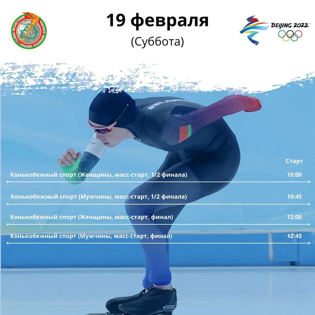 ⚡️19 февраля 🇧🇾белорусские спортсмены выступят в соревнованиях по конькобежному спорту.