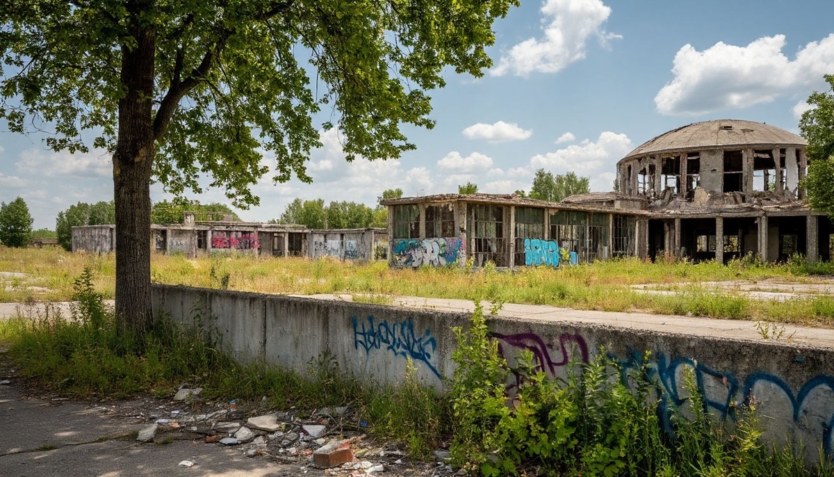 Сами по себе развалины не были чем-то примечательным. Издали виднелись какие-то ангары, битые стёкла и граффити. Рассмотреть территорию не давал сплошной бетонный забор. Мы доехали до ворот и остановились. Для подпольной нарколаборатории место вполне подходящее. Осталось только придумать, как заглянуть за забор. Мой ход. Я подмигнула Кириллу и выскочила из машины.
