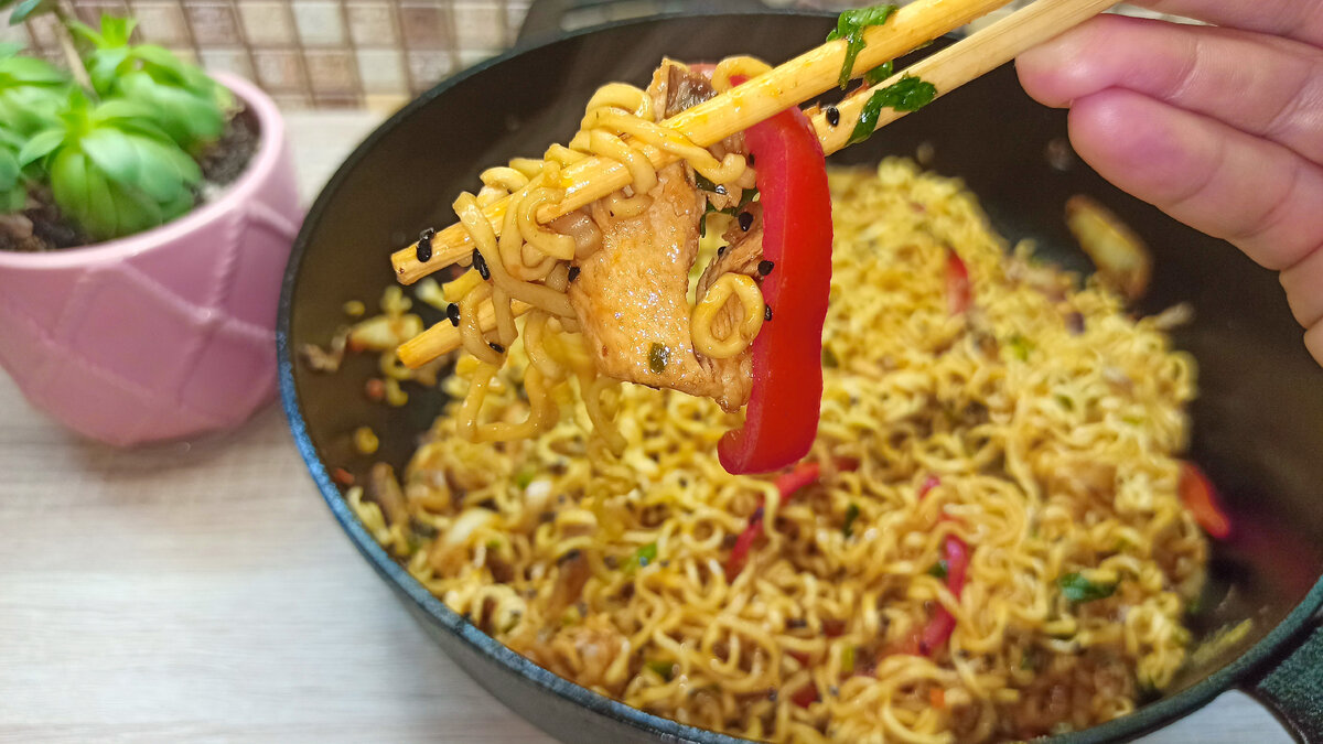 Как сделать вкусный домашний обед с лапшой и мясом из «пакета бомжа»