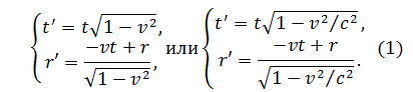 Предельным случаем этих преобразований, как и любых предыдущих, являются галилеевы преобразования координат. А сами уравнения (1) можно считать предельным случаем преобразований Лоренца при v << c2, но имеется какая–то необходимость учета коэффициентов Лоренца. Такая необходимость для преобразований собственно координат пространства–времени достаточно специфична и вряд ли пригодится, т.к. порядок величины v/c2 < 10–11, но2 для векторных параметров (например, энергии и импульса) классической механики Ньютона вполне может пригодиться.