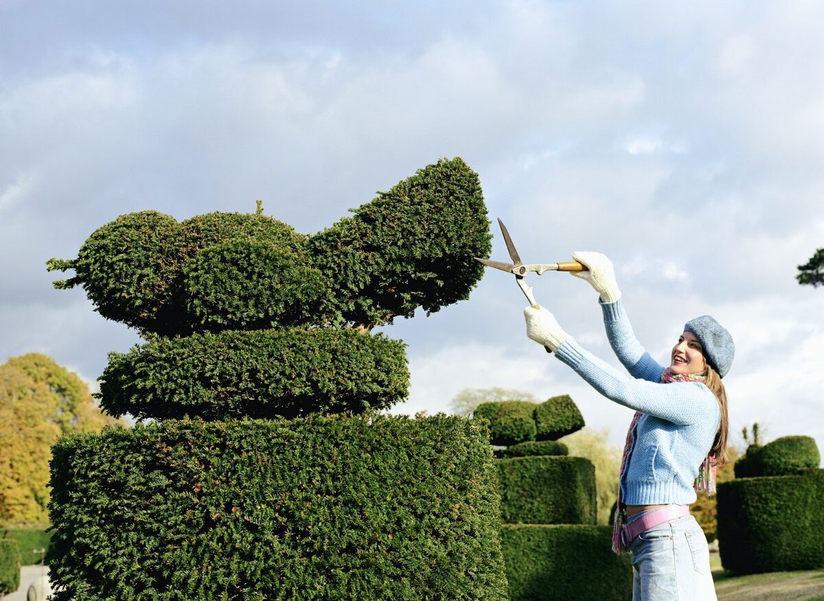 Помимо удивительных цветов, уникальных деревьев и различных фигурок можно разнообразить сад топиариями. Кустарниковые скульптуры — один из древнейших способов украшения территории дома. Как создать их у себя? Выбор растения Для получения эффектной фигуры необходимо грамотно подобрать растение в соответствии со следующими критериями: Можно закрыть глаза на некоторые пункты, но стоит сразу оценивать возможные сложности в уходе. Создание топиария на каркасе Многие искусные формы невозможно создать из естественно растущего куста. В таких случаях применяется каркасная основа, которая создается по эскизу. В нем рассчитываются необходимые для возведения материалы, устойчивость и общий вид. Проволочная основа заполняется субстратом, а в отмеченные лунки высаживаются ростки. Уход за топиарием Многие нюансы ухода зависят от выбранного растения. Однозначно можно отметить два главных правила: Пробовали вырастить топиарий в саду?