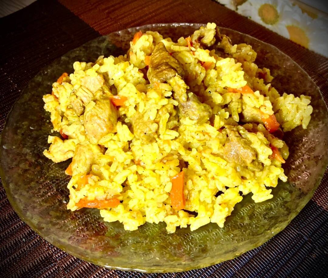 Ингредиенты: риса, свинины, морковь, лук, чеснока, масло растительное для жарки, Специи : , зира, паприка, перец чёрный, имбирь молотый, мускатный орех, соль
