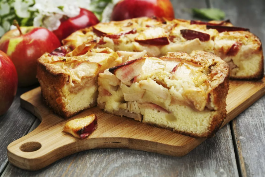 Шарлотка классическая 1,5 кг Ингредиенты: Яйца 8 шт Сахар 300 гр -Разрыхлитель 5 гр Мёд 60 гр Мука пшеничная 300 гр Яблоки крупные 4-5 шт -Ванилин 1,5-2 гр Приготовление: 1. Яблоки нарезать дольками (чтобы положить вниз формы для выпекания) и кубиками (чтобы добавить в тесто). 2. Взбить яйца, сахар, ванилин и мёд. 3. Просеять в яичную смесь муку и разрыхлитель. 4. Смазать форму маслом и присыпать мукой или манкой. 5. Выложить вниз формы яблоки дольками (можно в два слоя). 6. Вмешать в тесто яблоки нарезанные кубиками и залить тесто в форму. 7. В разогретую на 180 духовку поставить шарлотку на 30-40 минут до готовности. Калорийность на 100 грамм - 205 ккал БЖУ 3 5/3/40