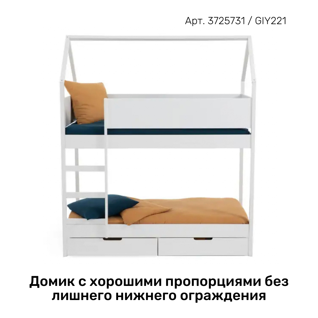 Детские кровати. В мире детских кроватей есть перекос в какой-то излишний «детский» дизайн. Найти двухэтажную кровать простой формы, но «с изюмом», бывает не так-то просто 🤪 У La Redoute она есть, плюс есть и нетипичные, нестандартные кровати, трехэтажные, например. Если в детской места реально нет, но потолки высокие — это выход.