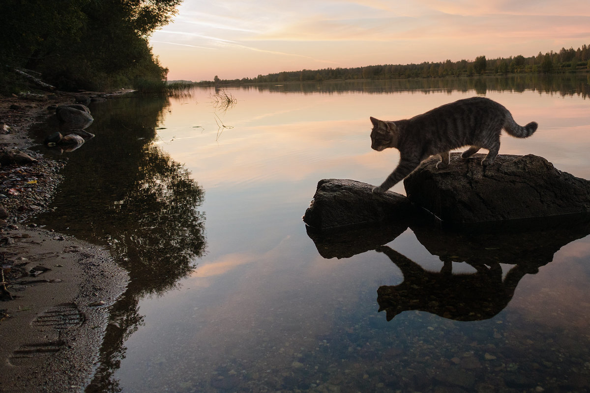 Самое загадочное поведение кошек связано с водой, которую они пьют. Однако причин такого поведения множество. Многие корнями уходят в прошлое наших хвостиков Причина 1. Лесные ручейки Предки наших кошек пили воду из многочисленных ручейков, родников и озер. Соответственно до того, как сделать первый глоток они разгоняли лапками листья и мелкие веточки. Эта привычка осталась Причина 2. Хищники Если речь шла о большой реке или озере, то прежде стоило проверить водоем на предмет наличия хищников. Поэтому пробуем сначала лапой, внимательно наблюдая за поверхностью. В конце концов лучше пусть оттяпают лапу, чем голову Причина 3. Слепое пятно Как мы писали выше, у кошки глаза расположены таким образом, что животное, наклоняясь к блюдцу, ничего не видит непосредственно под подбородком. Поэтому, предварительно нащупав воду лапой, кошка пытается точнее определить дистанцию между языком и её поверхностью. Обычно такое поведение замечают у молодых кошек и котят, которые пока учатся. Кстати, эта