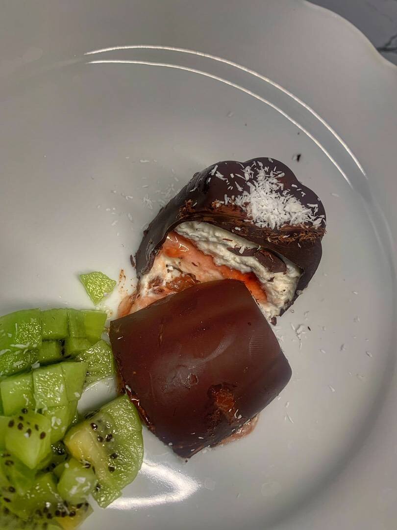Ингредиенты: шоколада, можно кондитерский шоколад, Творог , Кокосовая стружка , Сметана Способ приготовления: Шоколад растопить. Силиконовые формы смазать толстым слоем, без просветов шоколадом. Убрать в морозильную камеру 10-15 минут. Творог смешать с кокосовой стружкой, добавить сметану. В шоколадную форму выложить с творожную массу. Можно между двум слоями добавить слой джема. Убрать в морозильную камеру на 20 минут. Верхний слой бомбочки (верхушку) покрыть шоколадом, убрать в морозильную камеру на 10-15 минут. Отправить в холодильник на 1 час.