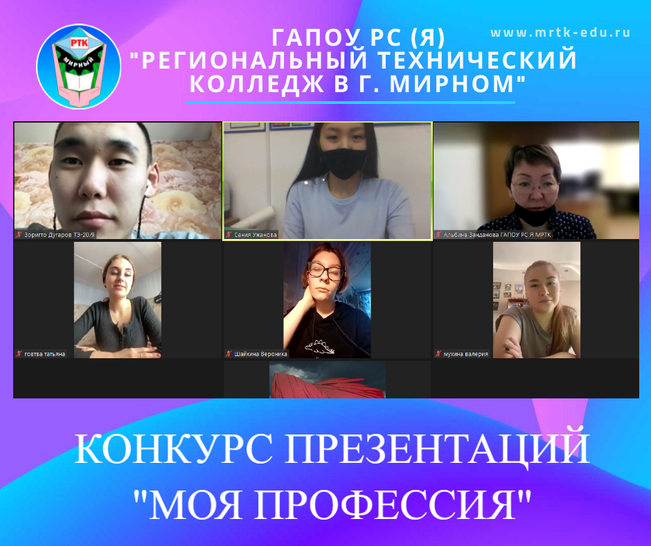 Итоги конкурса презентаций «Моя профессия» в МРТК. 15 февраля 2022 г. в ГАПОУ РС (Я) «Региональный технический колледж в г. Мирном» проведен конкурс презентаций на тему: «Моя профессия», посвященный 100-летию образования Якутской АССР. Мероприятие проведено с целью привлечения внимания и вовлечения студентов к медиатворчеству, расширению знаний о мире профессий. Участниками стали ребята вторых и третьих курсов из учебных групп: ДО-20/9, П-20/9, РЭНиГ-20/9, ТЭ-20/9, Э-20/9. Студенты интересно рассказали о профессиональных компетенциях нефтяника, электромонтера, воспитателя, повара… Итоги мероприятия: 1 место – Татьяна Говтва, гр. РЭНиГ-20/9. 2 место – Эрик Шаркенов, гр. Э-20/9. 3 место – Валерия Мухина, гр.ДО-20/9. Поздравляем победителей! Остальные участники получат сертификаты. Данное мероприятие оказалось полезным и познавательным для студентов колледжа, помогло расширить кругозор спектра специальностей и профессий, которым обучают в МРТК. Ужанова Сания Сабитовна, куратор гр. ТА-21/9