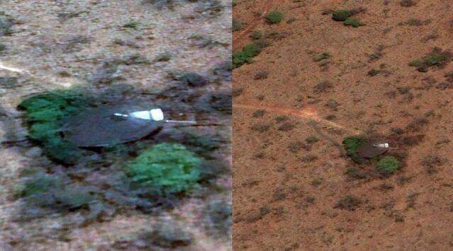 Известный уфолог Скотт Уоринг при помощи сервиса Google Earth изучал южную часть Африки и обнаружил весьма странную дискообразную структуру, которая по форме очень напоминает классическую летающую тарелку. По словам Уоринга, загадочный металлический объект скрывался в роще деревьев, расположенной далеко от ближайшего города. Объект выглядит как классический диск с заостренным горбом в центре. Уфолог указал координаты, по которым находился данный объект: 25°53'41.03"S 27°48'5.82"E На фотографии исследователь обнаружил вокруг объекта огромный круг, похожий на те, что обычно находят очевидцы на полях. Не менее загадочным является то, что спустя несколько месяцев НЛО исчезает из картографического сервиса. Именно этот нюанс позволил уфологу сделать определенные выводы. Он считает, что странный дискообразный объект принадлежит инопланетянам и он скрывался среди деревьев от ненужных взглядов. Уоринг считает, что объект был припаркован в этом месте целенаправленно, чтобы положительно влиять на