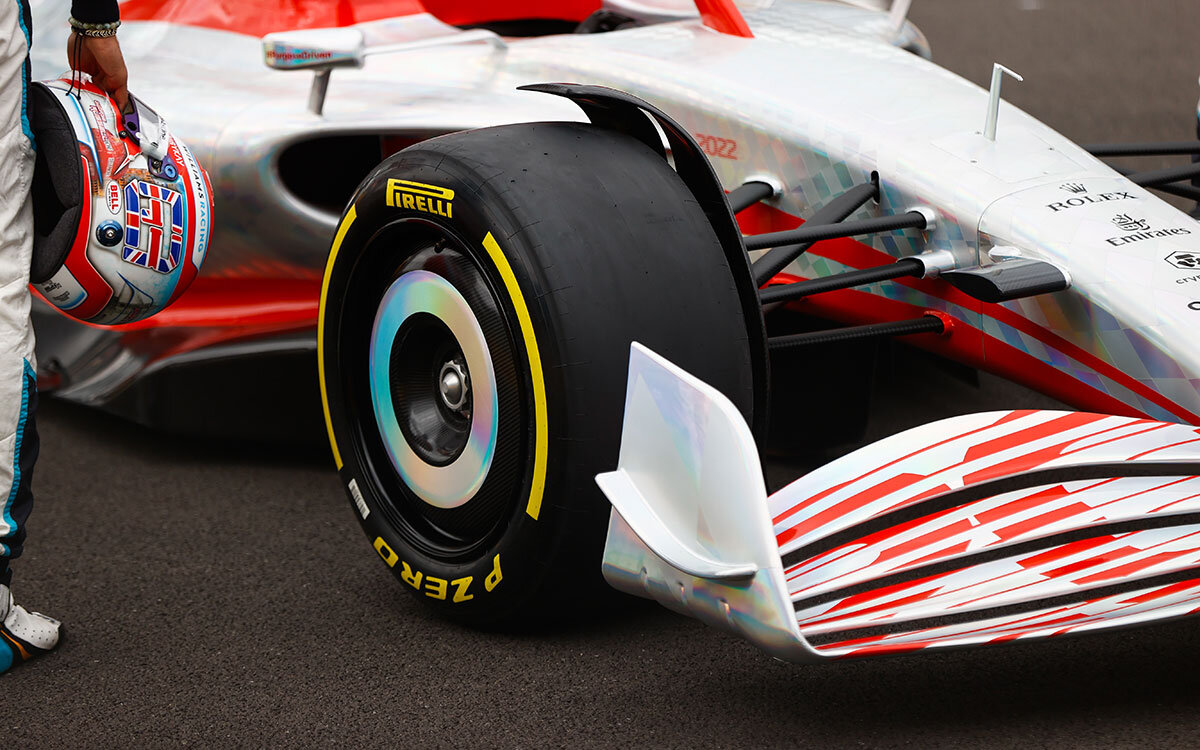 В 2022 году новый регламент затронет не только аэродинамику, но и колёса с шинами. С 60-ых годов двадцатого века болиды формулы 1 ездили на 13 дюймовых дисках. Отныне их заменят на 18 дюймовые. В новых колёсных дисках появятся колпаки. Они предназначены для того, чтобы воздух не попадал в колесо и при выходе не портил воздух (не создавал "грязный" воздух), такая задача стоит у многих элементов нового регламента. Но эти колпаки будут затруднять работу на питстопе. Раньше механики крепко брали колесо за спицы диска, теперь же руководители сомневаются, что питстопы получатся такими же быстрыми. Для смягчения этой проблемы в FIA пошли на встречу, они разрешили немного углубить колпак в колесо. С новыми колёсами появится и новая резина. Она должна позволить пилотам меньше следить за ней и больше гоняться. В 13 дисках тепло от движущейся середины воздействовало на резину сильнее чем на 18-ых. Pirelli также заявляет, что новая резина будет состоять из другого состава. Они обещают большую уст