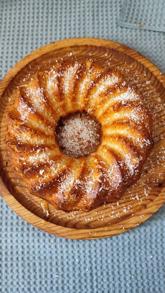 Очень ароматный, быстрый и приятно влажный за счет йогурта. Если любите кокос, то вам понравится. #игры #выпечка Ингредиенты: йогурта со вкусом кокоса, натурального или греческого, муки, кокосовой стружки плюс немного, чтобы посыпать сверху, яица, сахара, растопленного сливочного масла, разрыхлителя , жидкого меда Способ приготовления: С помощью миксера взбить яйца с сахаром до однородной воздушной массы. Добавить растопленное сливочное масло, перемешать с помощью миксера. Добавить греческий йогурт, перемешать с помощью миксера. Добавить просеянную муку с разрыхлителем и кокосовую стружку. Хорошо перемешать с помощью миксера. Тесто выложить в форму, застеленную бумагой для выпечки, и поставить в разогретую до 180 градусов духовку на 30-40 минут (до сухой зубочистки). Дать остыть, сверху смазать медом и посыпать кокосовой стружкой. Приятного аппетита....
