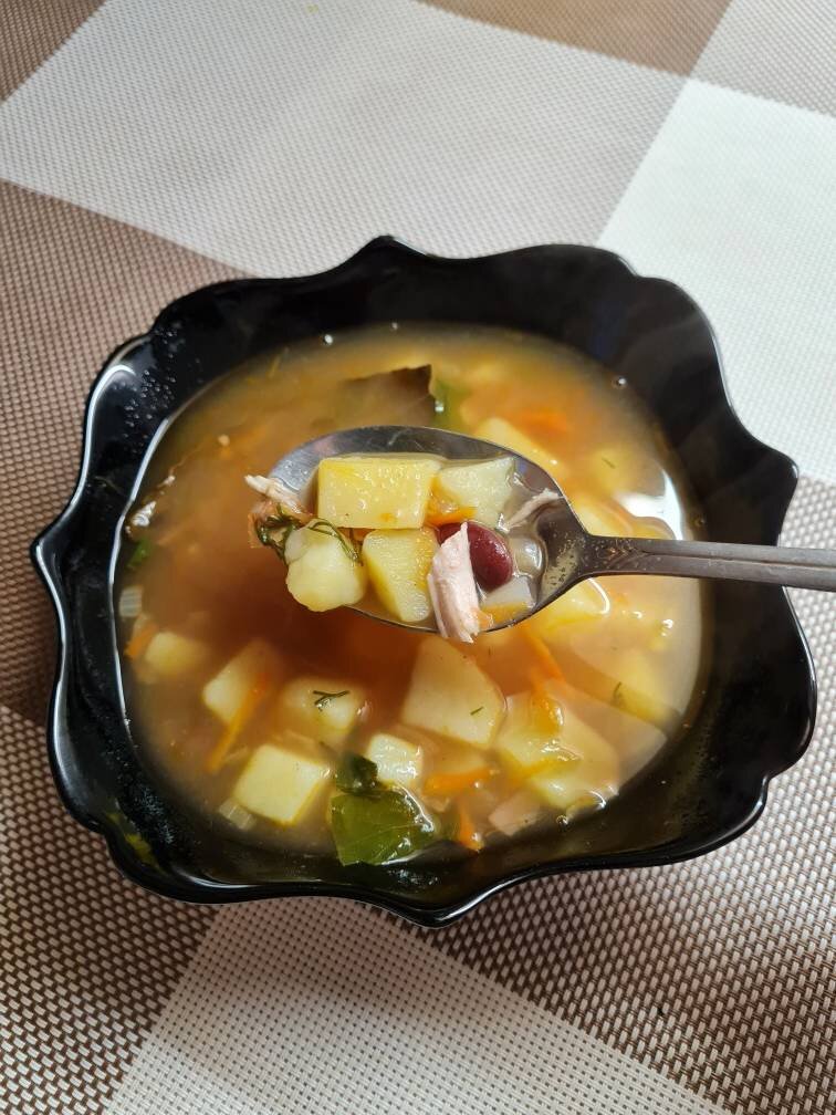 #игры Ингредиенты: Филе курицы, Картофель, Лук, Морковь, Консервированная фасоль в томате, Соль, специи, зелень Способ приготовления: Варим бульон из филе + соль + лавровый лист 40-50 минут. Достаём филе, нарезаем небольшими кусочками и отправляем обратно в бульон (незабываем снимать пенку). На сковороде обжариваем лук + морковь до готовности. Затем добавляем в зажарку фасоль + зелень + специи. В бульон кидаем нарезанный картофель и отвариваем до готовности. Когда картофель станет мягким добавляем зажарку с фасолью и варим ещё мин 5-7. Приятного аппетита!! С жду ваши фотоотзывы!🙂 Чтоб не потерять меня подпишись👇.
