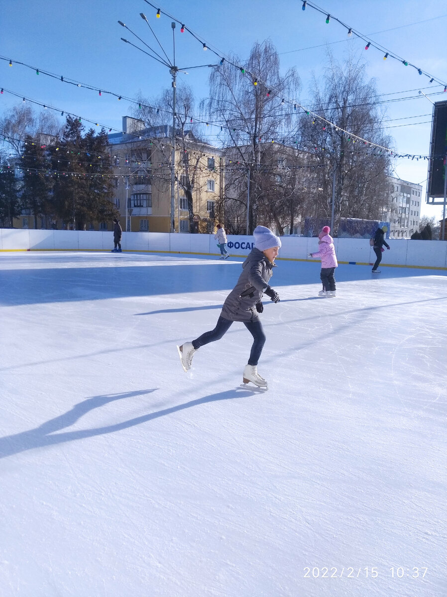 Я взяла несколько уроков у тренера, а ещё меня инструктировала женщина на катке (восхищаюсь такими людьми, та женщина давно пенсионерка, даже по новому законодательству давно, но катается легко и умеет объяснить таким чайникам, как я). И вот на днях я внезапно осознала, что уже не смотрю под ноги, когда еду, что легко достаю из кармана телефон и отвечаю на звонок, не прекращая движение по льду или начинаю снимать дочь.