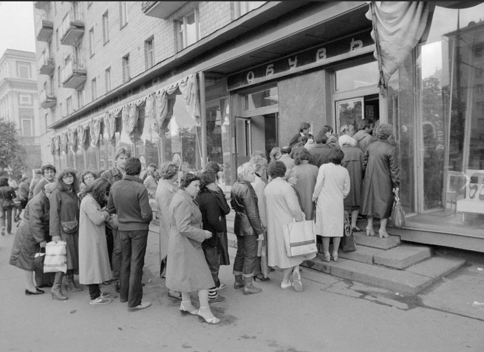 В соседнем доме, располагался овощной магазин. Проходя мимо него, я увидела здоровенную очередь. Продавали апельсины. Такие они были красивые с наклейкой черный ромбик на каждом апельсине. Давали по 2 кг в руки. Продавец с апельсинами располагался на улице рядом с магазином, т.к. площадь магазина не смогла бы вместить всех желающих купить этот фрукт.