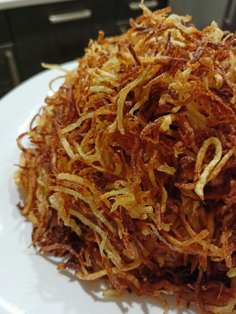 Всем большой привет! Сегодня готовлю очень хрустящий салат, впервые готовила по совету подруги на праздник он простой, но такой вкусный, все гости быстро его разобрали, а весь секрет в том что он хрустит, интересный внешне и прекрасно сочетается с другими продуктами. Делитесь своим мнением о рецепте?Пробовали ли такой? Спасибо за подписку и лайки! РЕЦЕПТ: Картофель - 3 шт. Свежий огурец - 1 - 2 шт. Колбаса вареная - 150 гр. (+/-) Сыр - 100 гр. Майонез - по вкусу ПРИГОТОВЛЕНИЕ: Картофель 3 шт. очищаю и натираю на крупной терке Тщательно промываю по проточной водой Обмакиваю бумажным полотенцем Далее вливаю в сковороду растительное масло (примерно 1 см) Обжариваю картофель небольшими порциями Жарится быстро Выкладываю на бумажное полотенце и сразу немного солю Перемешиваю Салат буду выкладывать слоями (если есть кольцо для салата воспользуйтесь им) Свежий огурец 1 шт. (крупный, пробовала готовить со свежим помидором, тоже получается вкусно) нарезаю соломкой Беру симпатичное блюдо и выкла