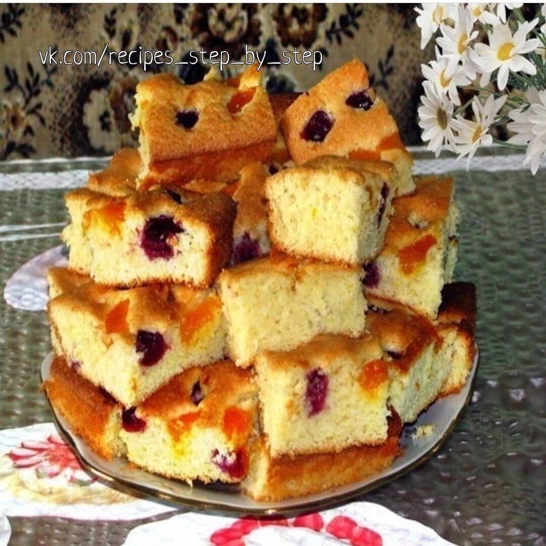 Ингредиенты:⠀ - 1 ст. ложка подсолнечного масла - 1 стакан минералки - 4 яйца - 2 стакана сахара - 1 пакетик ванилина - 4 стакана муки - 1 пакетик разрыхлителя - 3-4 мандарина - 200 гр консервированной вишни ⠀ Приготовление:⠀ 1. Смешать масло с минеральной водой, добавить яйца, сахар, ванилин, разрыхлитель. Все хорошо перемешать. 2. Муку просеять и добавить к перемешанной массе, перемешать. 3. Выложить массу на смазанный маслом противень, разровнять поверхность. 4. Сверху выложить вишню по всей поверхности и дольки мандарина. 5. Перемешать немного маргарина с мукой, сделать крошку. Посыпать крошкой весь пирог. 6. Выпекать в разогретой до t 180 градусов духовке примерно 40-45 минут. 7. Готовый пирог посыпать сахарной пудрой. ⠀ Приятного аппетита!