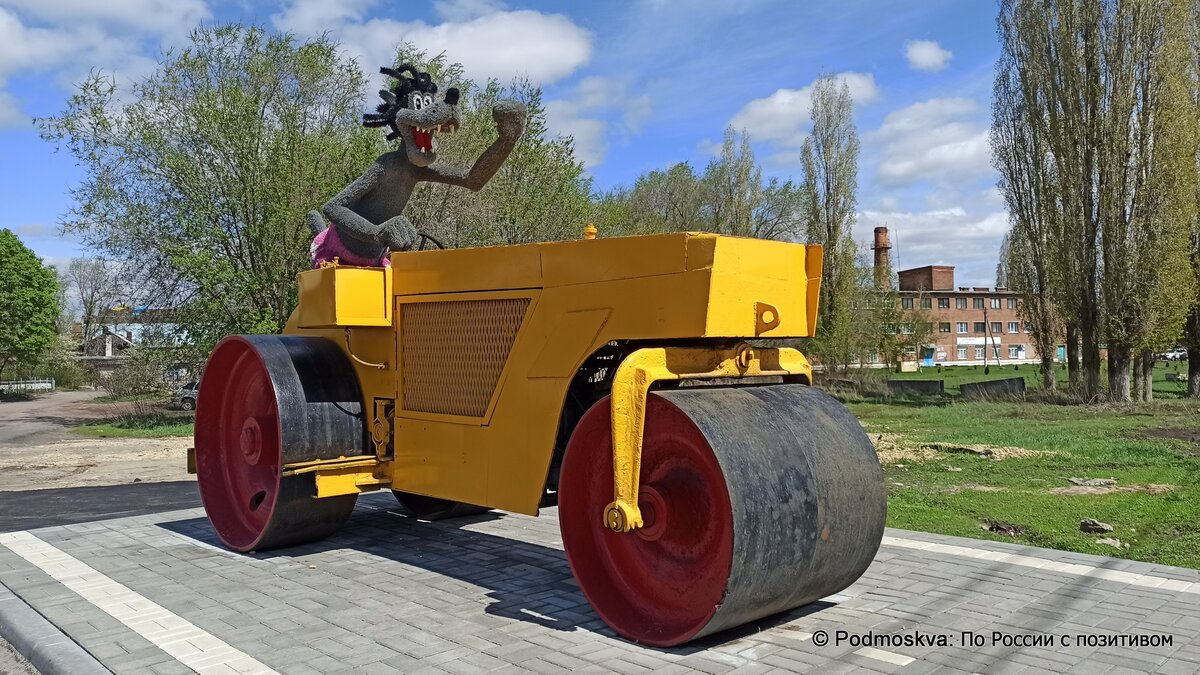 Волк из «Ну, погоди!» известен каждому. Мы выросли на этом мультике, его знают наши дети, а теперь ещё и памятник ему необычный появился. Были мы как-то в Борисоглебске проездом, останавливались там на ночь. И случайно увидели это чудо. Красавец из детства не остался без внимания, мимо просто не смогли проехать. Волк на катке в Борисоглебске на улице Матросовской появился перед зданием асфальтобетонного завода пару лет назад. И сразу же стал одной из главных и любимых местных достопримечательностей. Этот объект ни одну детскую душу равнодушным не оставит, да и взрослые с удовольствием в ностальгию погружаются. Помните ведь этого обаятельного хулигана в вечной погоне за Зайцем? Для Волка не только каток поставили, но и нарядили его забавно в розовые трусы в цветочек и дорожку специально смастерили, по которой он в погоне мчится. Интересен ещё и тот факт, что каток этот до сих пор на ходу и вполне мог бы ещё послужить по назначению. Вот только устарел он, заменили давно новыми, а тут