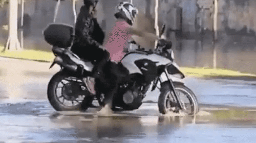 С одной стороны, любая большая лужа может таить в себе множество сюрпризов, как правило, неприятных. Но с другой стороны, сами посудите, откуда на заасфальтированной улице такие огромные ямы? Два человека и мотоцикл - с головой. Ужас.