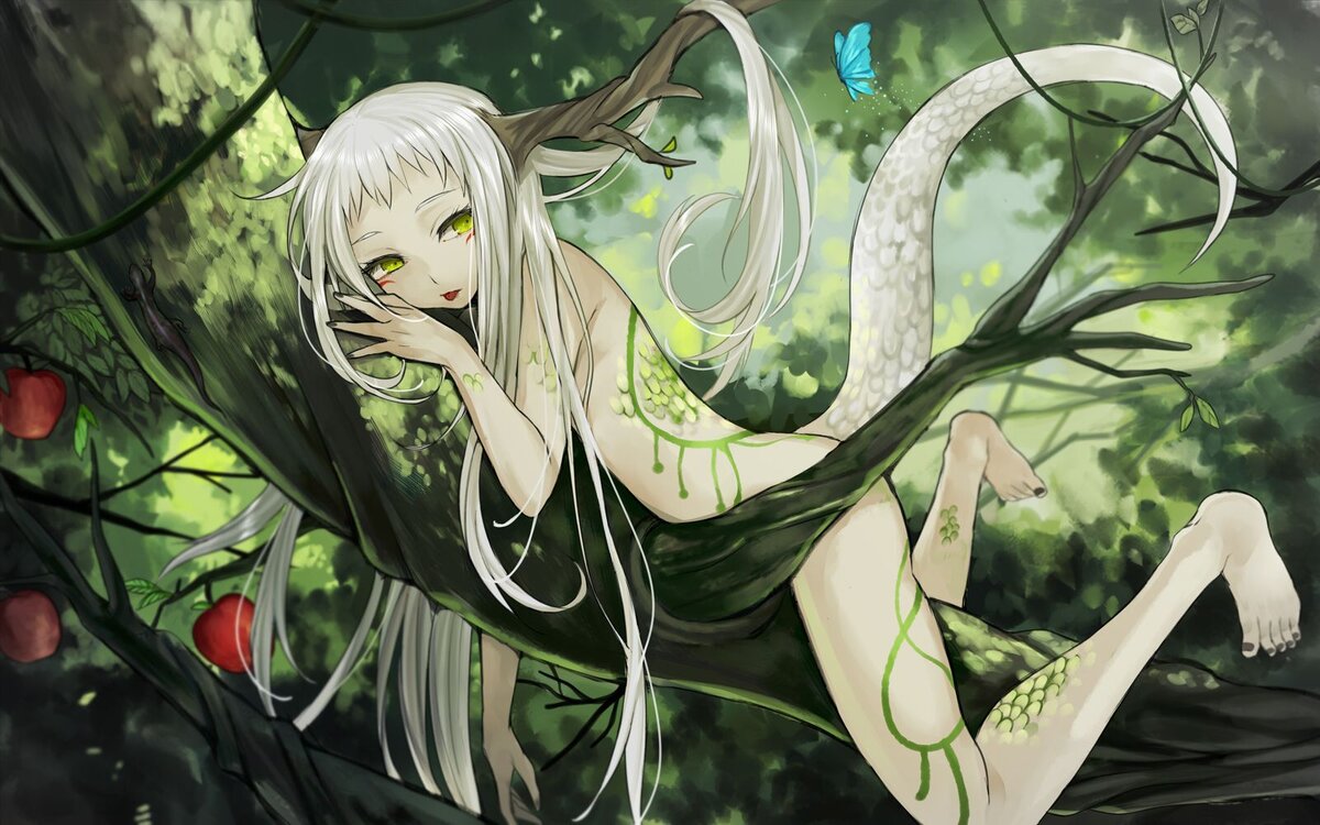 В очередной раз тропка вывела все к той же низко нависшей толстой ветке, но в прошлые разы на ней никто не сидел, в отличии от данного момента. Этот кто-то или что-то сильно походило на молодую гибкую девицу. Если бы не цвет кожи, да ещё несколько деталей, выдававших в ней не человека. Хвост, например: хороший такой, цепкий — вон как ветку обмотал. Сидит чудо непринуждённо, как на лавке.