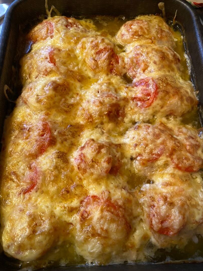 Ингредиенты: фарша, сыра, помидора, Майонез, Яйца, Батон, Специи, Молоко Способ приготовления: Замесить фарш. Добавить 2 яйца, смоченный батон (без корочек) добавить специи. И выложить в противень с маслом. Сверху помидор, у меня по 2 кружка. Натертый сыр выложить сверху. Смазать майонезом и в духовку 180•градусов/40 мин. Готово. Подавать с любимым гарниром.