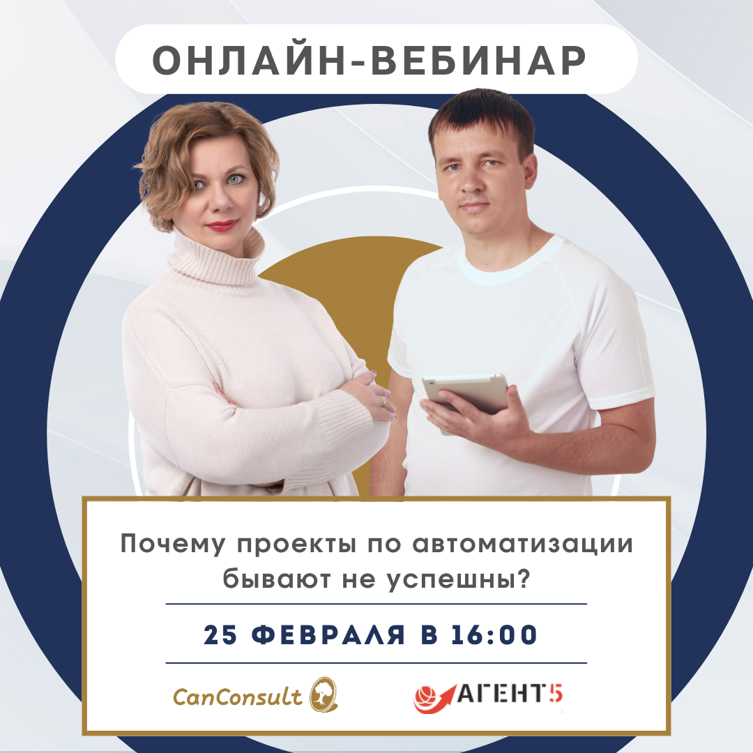 Бесплатный совместный вебинар Canconsult и Пятая среда 🔥 25 февраля в 16:00 (мск) Почему проекты по автоматизации бывают не успешны? Как сделать так, чтобы работало? Своей экспертизой и инсайтами поделятся: Директор и основатель Canconsult Наталья Эйдинова Директор и основатель компании ИТ-компании “Пятая среда” Максим Максименко Для кого вебинар: - У кого есть намерение автоматизировать бизнес - У кого внедрение, но ни конца ни края не видно - Кто хочет автоматизировать учет и сейчас в начале пути - Для собственников малого и среднего бизнеса, отрасль не имеет значения Вам точно нужно на вебинар, если: - Слишком много времени тратится на разбор отчетов и операционку - Нет единой системы контроля - Непонятно куда смотреть, куча отчетов, таблиц - Хотите в одном окне всю информацию, наглядно, понятно - Нужна программа для мобильного контроля (в телефоне, в планшете, с любого устройства) Что получите в результате: - Понимание как выбрать подрядчика на автоматизацию - Понимание как не
