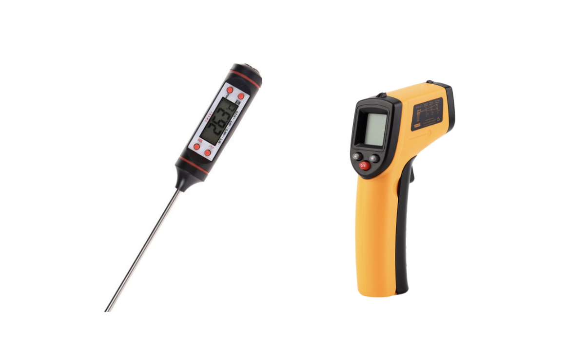 В этой статье я расскажу, что это за приборы и почему они обязательно пригодятся любому кондитеру, особенно начинающему. Игольчатый термометр и пирометр очень активно используются на кухнях поваров и кондитеров, однако необходимость их использования возникает в разных случаях. Игольчатый термометр или, как его называют, термощуп представляют собой иглу с электронным табло. Лучше всего он подходит для измерения температуры карамели, горячих сиропов, соусов. Важный лайфхак! Чтобы проверить точность данных термометра, есть простой способ его калибровки. Случается, что игольчатые термометры привирают на пару градусов. Когда мы работаем с высокими температурами - варим сахарный сироп, например, точность крайне важна. Доведите воду до кипения. Как мы знаем, температура кипения воды 100 градусов. Если ваш термометр - показывает 100 - бинго! Он точен и безошибочен. Если же он привирает немного, при готовке всегда держите эту разницу температур в уме и делайте выводы. Если термометр-игла изме