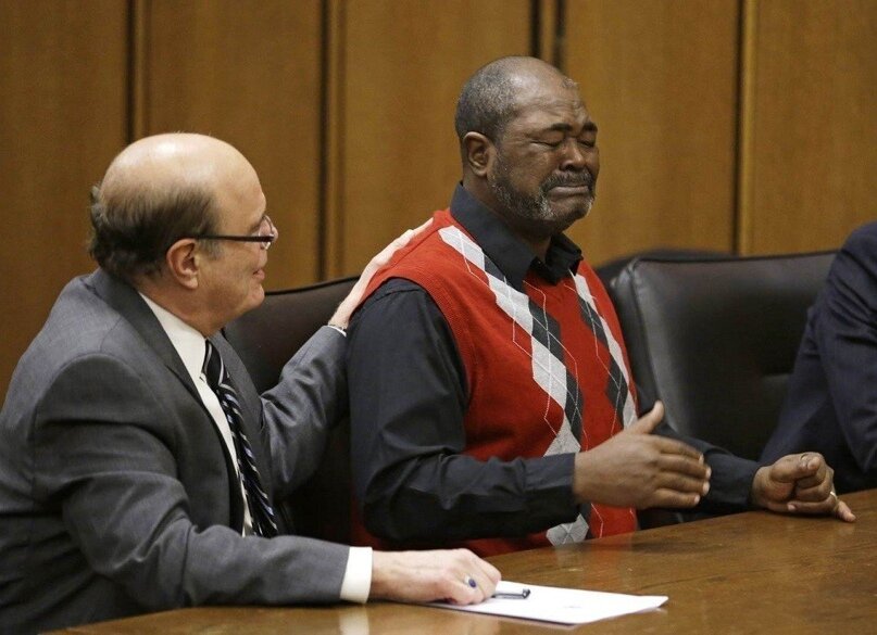 Эмоции человека, отсидевшего в тюрьме более 38 лет за убийство, которого он не совершал, после признания его невиновным. Ронни Бриджмен плачет после того, как был окончательно оправдан в суде Кливленда, США, 9 декабря 2014 года. Есть и другие случаи несправедливо осуждённых. Рики Джексон, которому сейчас 58 лет, был одним из трех обвиняемых, попавших в камеру смертников в 1975 году по обвинению в убийстве с отягчающими обстоятельствами. О том, что трое мужчин застрелили бизнесмена в Кливленде (штат Огайо), полицейским рассказал 13-летний мальчик Эдди Вернон, который в момент убийства находился в школьном автобусе в квартале от места происшествия. Вернон в марте 2014 года под присягой заявил, что в 1975 году его вынудили дать показания против Джексона и еще двоих фигурантов дела — братьев Уили Бриджмен и Ронни Бриджмен, который позже сменил имя на Кваме Аджаму. Основываясь на новых показаниях единственного свидетеля, суд в ноябре 2014 года отклонил обвинения в их отношении. В п