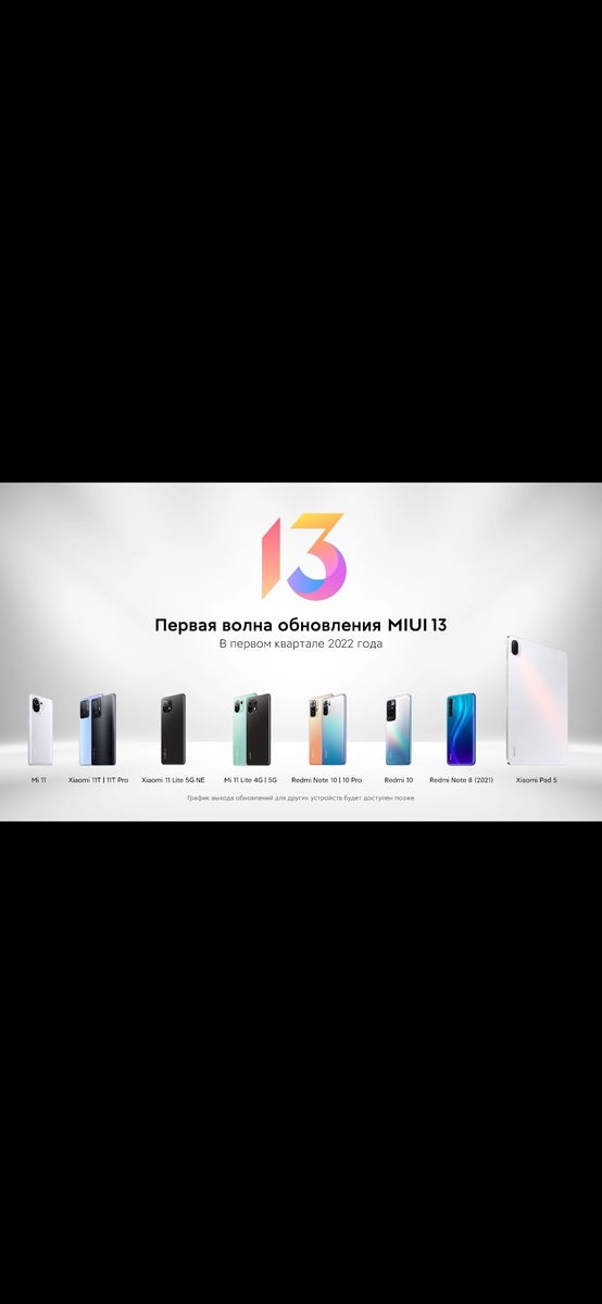 В ближайшее время владельцы нескольких моделей смартфонов Xiaomi получат новую версию MIUI для российских пользователей. Каких устройства будут в первой волне — смотрите в официальном графике обновления российской MIUI 13. Распространение обновлений идет волнами, поэтому следите за новостями, чтобы не пропустить выход новой прошивки для своего устройства! Полный список устройств также можно найти на официальном сайте MIUI 13: https://global.miui.com/ru