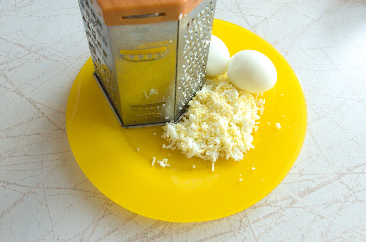 Варим яйца, чистим их и натираем на мелкой тёрке. Сыр и очищенные редьку, морковь таким же образом - на мелкую тёрку. Перекладываем овощи и яйца в одну глубокую миску. Добавляем пропущенный через пресс чеснок, соль, чёрный перец и майонез. Всё тщательно перемешиваем и подаём на стол.