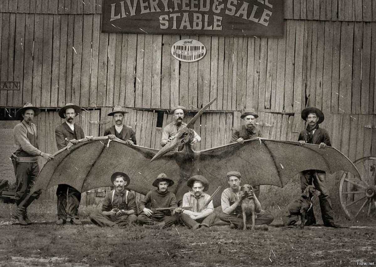Наш мир полон чудес . Учёные утверждают, что динозавры вымерли много миллионов лет назад . Это нам преподают в школе, но так ли это на самом деле? Всплыла информация, которая ставит под сомнение всё, что нам говорили ранее. https://youtu.be/hUiyBqzuMcs В XIX веке было найдено и убито существо, которое считалось вымершим уже на протяжении многих миллионов лет. Это Соединенные Штаты. Гражданская война. Фотография оказалась подлинной. С каждым новым прорывом в технологиях, фотографию в очередной раз просят изучить и проверить на подлинность, и каждый раз ответ оказывается положительным – фото настоящее. В 1893 году в США, неподалёку от небольшого городка Виксбург, охотники добыли необычный трофей. При ближайшем рассмотрении это летающее нечто оказалось совсем не птицей, не каким-то там орлом, а самым что ни на есть птеродактилем. К такому выводу пришли учёные мужи, которых удалось доставить к трофею. По этому поводу был приглашён фотограф, который и сохранил след в истории, запечатлев вс