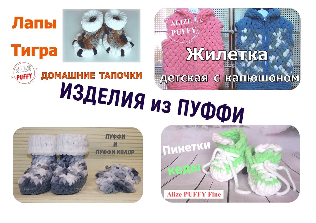 Подробные видео мастер-классы по вязанию изделий из Ализе Пуффи/Пуффи Файн/Пуффи Морэ для детей и взрослых. Идеи и воплощение. Приветствую всех посетителей моего канала "Мягкие петельки"! На канале я рассказываю о вязании из пряжи Alize Puffy /Puffy Fine/Puffy More и не только. Здесь можно найти статьи о пряже, описание и схемы вязания, бесплатные мастер-классы по вязанию из любых видов Пуффочки. Группа в VK https://vk.com/tokkiknit ************************************* Что можно связать из Пуффи кроме пледов, снудов и шапок? Конечно же, практически все, что вяжут из обычной пряжи! В этой подборке я собрала (и буду добавлять по мере выхода) мастер-классы по вязанию различных изделий из Ализе Пуффи, Пуффи Файн и Пуффи Морэ. Вам достаточно кликнуть на название нужного мастер-класса (активная ссылка синего цвета). Она приведет Вас к подробному видео по вязанию изделия! 1. Пинетки-кеды для новорожденного из Ализе Пуффи Файн Исправляю ошибку при вязании подошвы пинеток 2. Домашние сапож