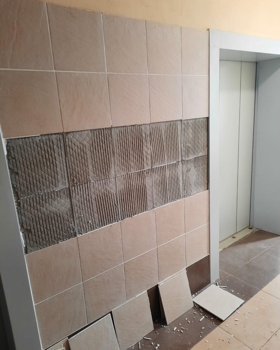 Мастера "ВСК СЕРВИС" выполнили работы по локальной замене облицовочной настенной плитки в лифтовом холле МКД по адресу: г. Химки, ул.Молодёжная, дом 19, подъезд 2, этаж 17. Оцените результат!