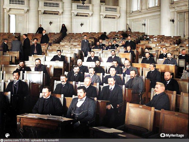 1) Депутаты первой Государственной Думы в зале заседаний