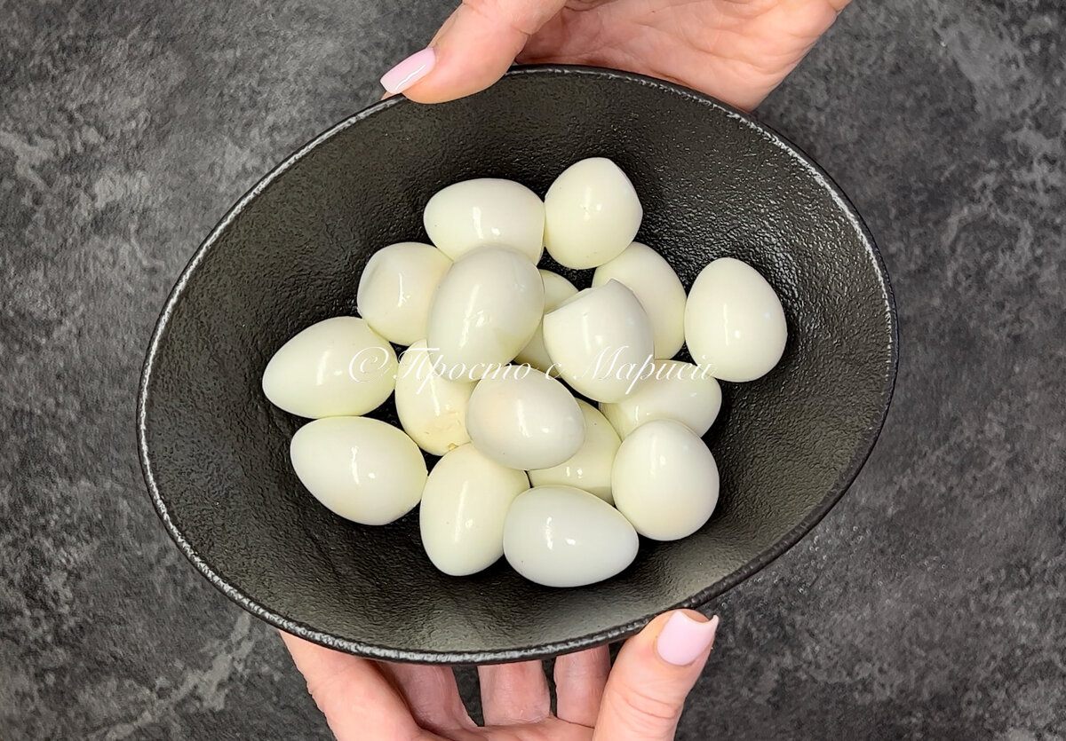 Минимальный набор ингредиентов, а результат на пять с плюсом. Всё, как я люблю! Привет, друзья! Вы на канале «Просто с Марией», и сегодня я хочу поделиться с вами простым рецептом яркой закуски с оригинальной подачей. Интересное миниатюрное угощение буквально на один укус. Уверяю вас, незамеченной такая закуска точно не останется. Отмечу, что приготовление хоть и не самое быстрое, но при этом совсем несложное. А удачное сочетание ингредиентов наверняка придётся по вкусу всем вашим гостям. Приступаем к приготовлению. Перепелиные яйца отварите вкрутую. По времени это занимает около 3-4 минут с момента закипания воды. Залейте готовые яйца холодной водой, а затем покатайте по столу, слегка придавливая ладонью, чтобы скорлупа потрескалась и её было легче снять. Аккуратно разрежьте яйца пополам, белки пока уберите в сторонку, а желтки переложите в отдельную ёмкость. Возьмите небольшой кусочек слабосолёной рыбы и мелко порубите ножом. У меня сегодня форель, но подойдёт и более доступ
