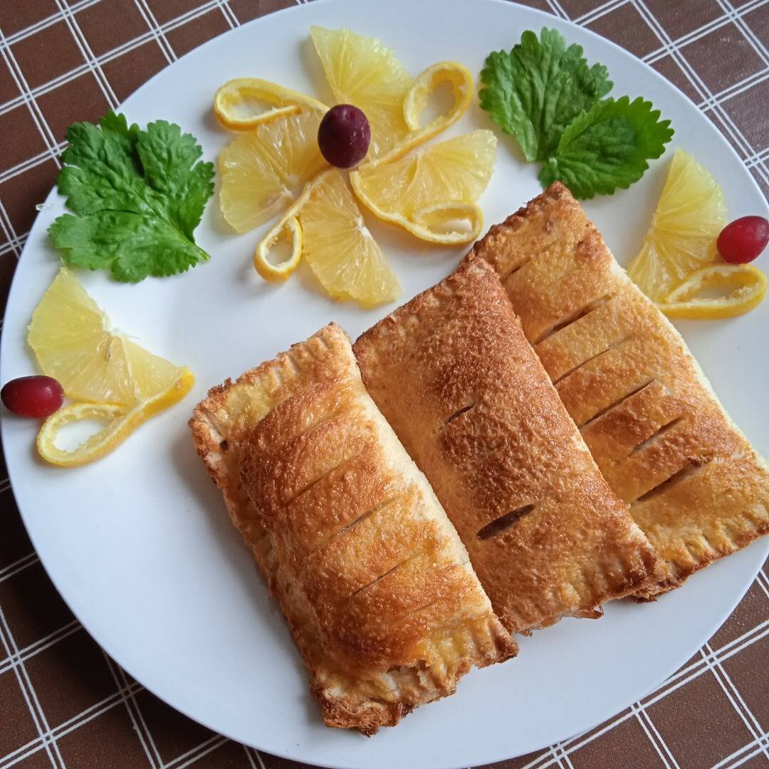 Пирожки делаются очень просто и быстро, получаются очень вкусные, с хрустящей корочкой и приятной нежной начинкой. #игры Ингредиенты: тостового хлеба, яблока, яйца, сливочного масла, сахара, мёда, по желанию корицу Способ приготовления: Яблоки почистить, убрать сердцевину, нарезать мелким кубиком. Обжарить на сливочном масле до мягкости, с добавлением сахара, мёда, корицы. С хлеба срезать корочки, мякоть немного раскатать, с одного края хлеба сделать надрезы, отступив от края около 1,5 см.. Взбитым яйцом смазать все внутренние края у хлеба. На половинку, без надрезов, положить начинку, закрыть другой половинкой, с надрезами, закрепить вилкой (начинку можно брать любую, только не жидкую). Противень застелить пергаментом, выложить пирожки, смазать взбитым яйцом. Выпекать при t 180, 15 минут.