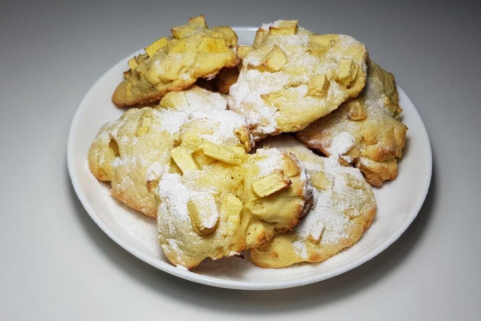 Печеньки очень необычные получаются, для меня во всяком случае. Рецепт достаточно простой и процесс приготовления тоже быстрый. #игры Ингредиенты: Яблоки, Яйцо, Сахар , Сливочное масло , Мука Способ приготовления: Взбиваем яйца минутку - две, затем добавляем сахар и взбиваем миксером до образования густой почти белой массы. Добавляем растопленное сливочное масло (я растопила его в микроволновке 😊), и снова взбиваем. Далее добавляем частями муку, делаем мы это потому что наше тесто в итоге будет очень густым и во избежание мучных комочков добавляем её частями. Вот такое густое тесто у нас получилось. Яблоки очищаем от кожуры, мелко нарезаем и отправляем в тесто. Хорошенько перемешиваем, на противень стелем пищ. бумагу и начинаем выкладывать будущие печеньки. У меня формочка в виде сердечка, конечно в процессе приготовления.. сердечки немного поплыли😂🤦♀️ иии форма стала не идеальна 😂🤷♀️. Отправляем печеньки в разогретую до 170° духовку на минут 20 - 25. Наши печеньки готовы, даем