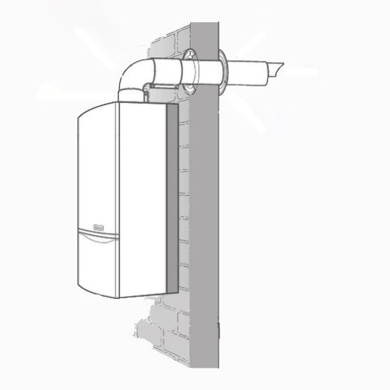 Все мы знаем, что газовые котлы при работе в холодное время года кроме тепла вырабатывают продукты горения, такие как дым, конденсат и сажа. Сейчас для котлов с закрытой камерой сгорания используют коаксиальные дымоходы. Коаксиальный комплект собран по принципу «труба в трубе». Диаметр труб составляет 60/100 мм, редко 80/125 мм. Коаксиальный дымоход работает по следующей схеме: по внешней трубе в котел поступает воздух, в то время как по внутренней происходит вывод дымовых газов в атмосферу. В итоге данный вариант дымохода не использует воздух из помещения и не меняет микроклимат в доме, что дает нам возможность установки отопительного оборудования в любом помещении в доме, а не ограничиваться котельной. Установка коаксиального комплекта решает такие задачи как: перегрев или обледенение трубы, по которой происходит забор воздуха. Если для подключения котла с закрытой камерой сгорания применить раздельную систему, то придётся использовать утепление и подогревать входящий воздух. Принцип
